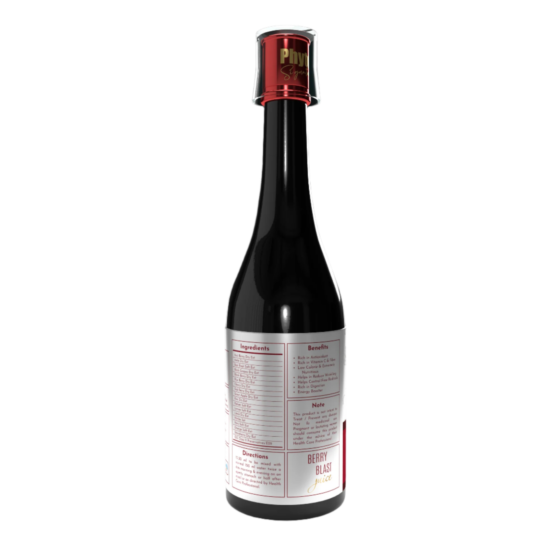 💡 कैसे लें : रोज़ाना 30–50 मि.ली. Berry Blast Juice का सेवन करें।